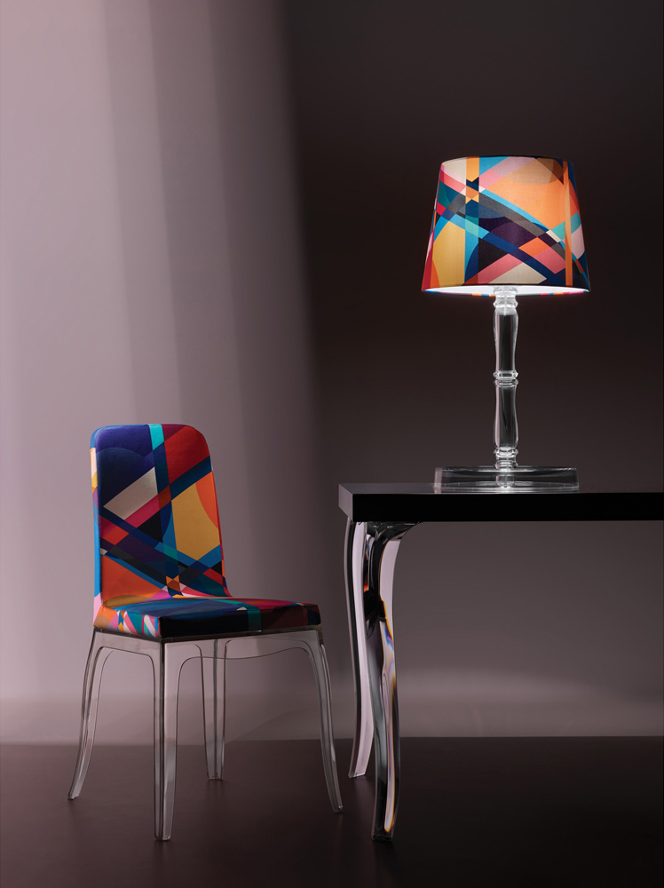 由Marcel Wanders设计的B.B椅子,像Louis Philippe椅子一样呈瓮形腿,采用纯粹的Wanders风格,并且像Louis Philippe椅子一样要求身体覆盖优雅的黑色巴洛克装饰或生动的多色图形。 B.B.拥有一个舒适而优雅的魅力灵魂,成为生活区的完美之选。 椅子与桌子相配,具有相同的腿部图案。 两条腿有两种颜色可供选择:黑色和透明。