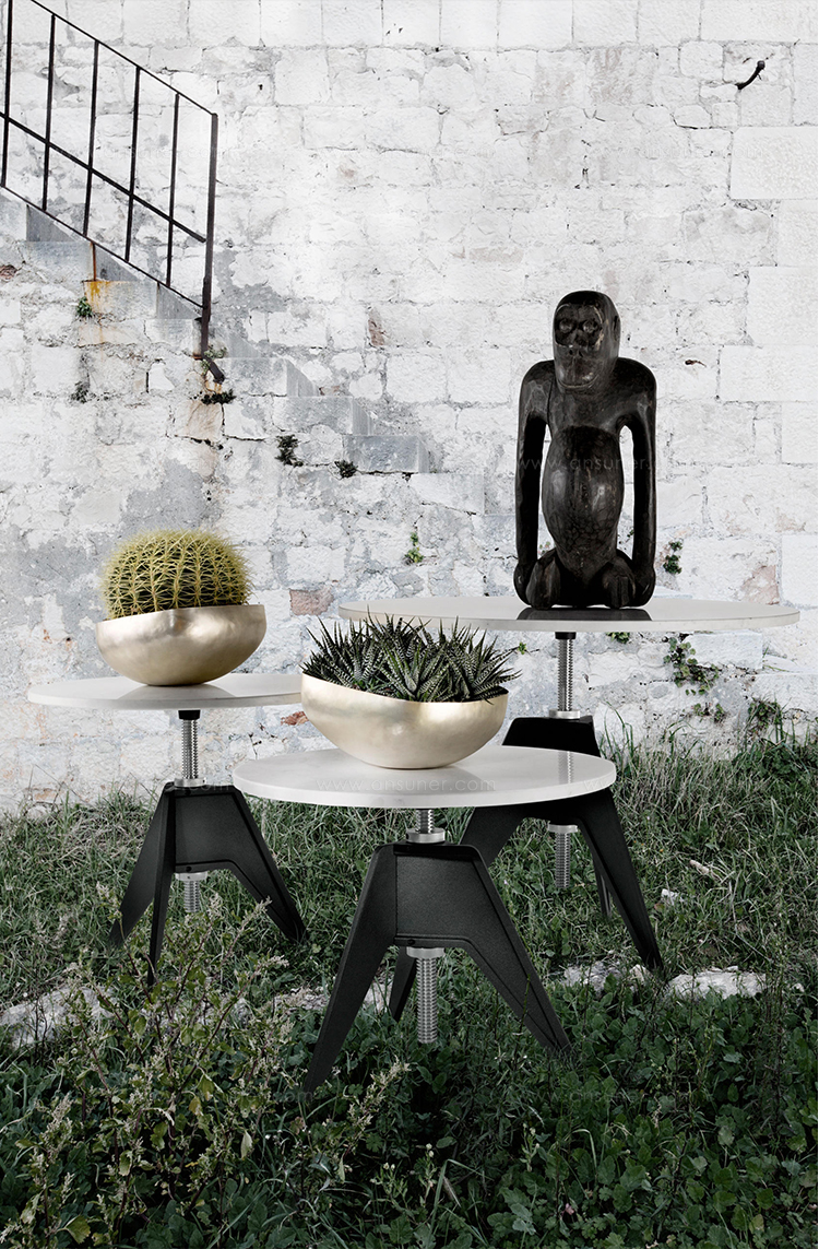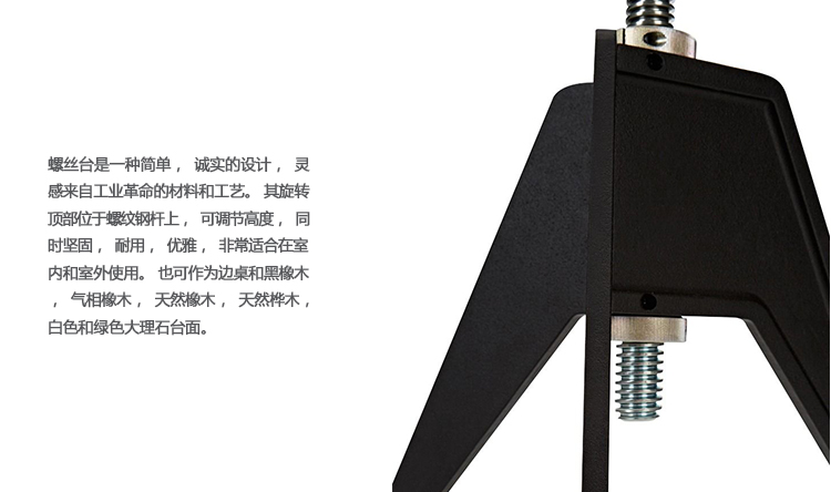 螺丝台是一种简单,诚实的设计,灵感来自工业革命的材料和工艺。 其旋转顶部位于螺纹钢杆上,可调节高度,同时坚固,耐用,优雅,非常适合在室内和室外使用。 也可作为边桌和黑橡木,气相橡木,天然橡木,天然桦木,白色和绿色大理石台面。
