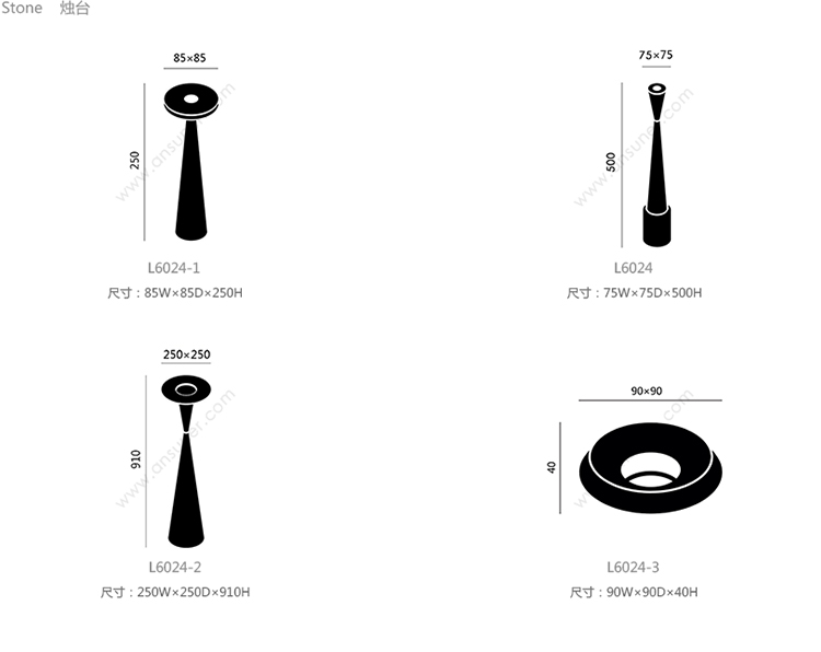 Stone 烛台 系列尺寸/示意图