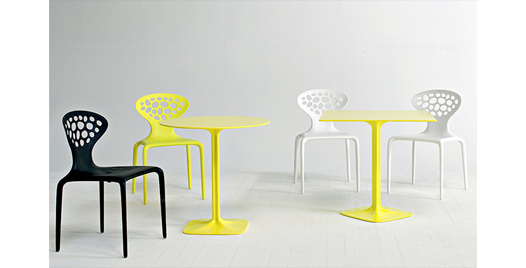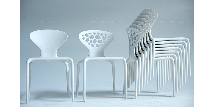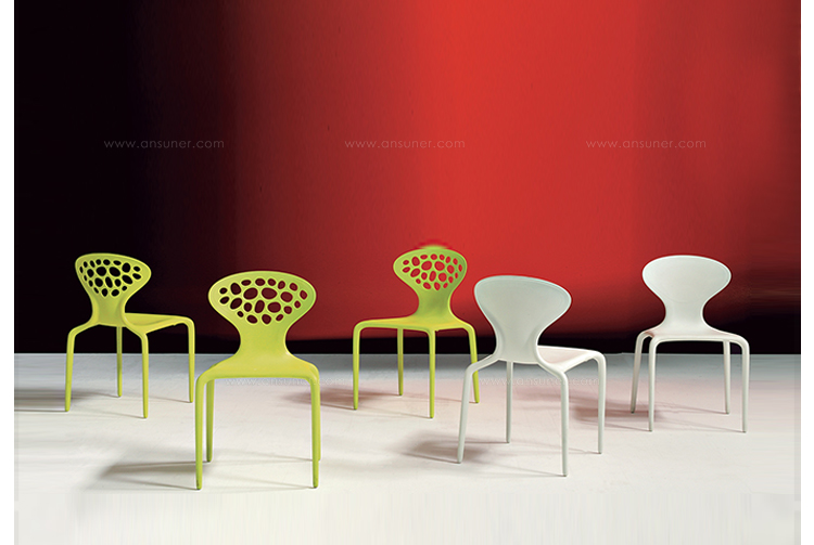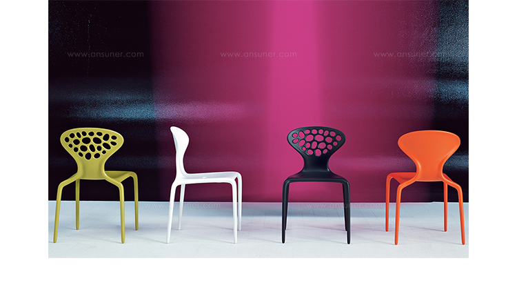 "Supernatural Chair(超自然椅)是意大利设计师Ross Lovegrove于2005年设计的作品,它是一个非常重要的创新,它使用注塑技术将玻璃纤维聚脂化合物塑造成型。这张新式的可层叠的椅子代表着新的视觉形式,数字化的生成,在它被使用的每一天都能感觉到,纤细的、活泼的、有益于健康。超自然椅传承了Lovegrove的有机性感的曲线,苗条、具有生命力。结合了人体解剖美学和先进制造技术,用两层的玻璃纤维增强的PM聚胺来调和内部结构框架和外表美学要求。超自然椅有着迷人的外形曲线,椅背不规则的圆洞有如外星空中的黑洞般神秘,又像大自然中随处可见的鹅卵石般清新自然,所以超自然椅所显现的气质是那么的与众不同。超自然椅,可堆叠,非常适合在户外的餐会、露天咖啡座、休闲场所,以及居室的餐厅、会议室、接待室等场所使用。"