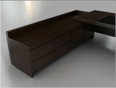 班台副柜配置有电动旋转线盒 抽屉具有自弹装置,无拉手设计