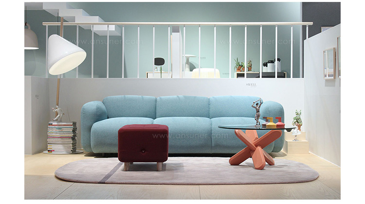 Swell 的命名借鉴于不断发酵膨胀的面包。它有一个饱满的形状,由一个强有力的衬垫,座位和两个弯曲的扶手组成,背面缝合,座位将沙发划分为几部分,最终达到这种饱满的舒适感。