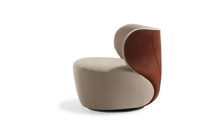 "宽敞和圆润,优美的曲线设计正是Bao Sofa(Bao沙发)最吸引人的地方。华丽的雕塑艺术的靠背,皮革拼凑在一起形成一个球状的样子。流畅的线条--简洁和优雅。扶手椅上结合材料,同时保持它们鲜明︰优雅马鞍皮革座椅背,纺织着天然织物。Bao Sofa(Bao沙发)就像给您一个欢迎的拥抱。新颖独特扪面方式:织物和皮革组合,扶手及整个座椅完全覆盖在织物或皮革。"