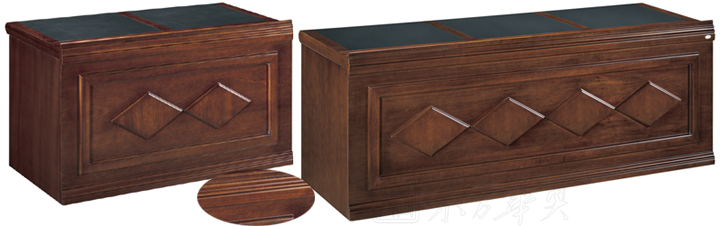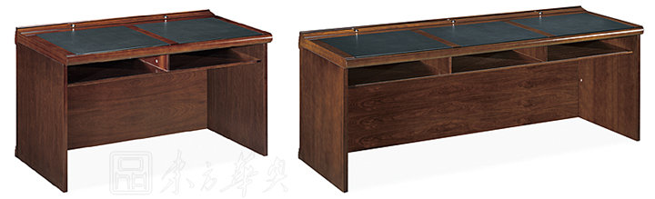 ※  全木制结构条形桌,桌脚可做直形及弧形,下设空格储物空间,内嵌式皮垫写字板,麦克孔,满足不同需要;