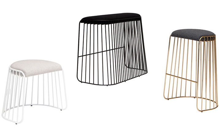 "The Bride's Veil Stool family’s unique language is meant as a graceful alternative to the archetypal bar stool.The double stool is the perfect solution for you and your date to enjoy sitting together uninhibited by separate stools.The strikingly elegant metal base is available in smoked brass,polished chrome, burnt copper,or powder coat,while the top is offered in COM upholstery.At every angle these stools offer a visual treat."