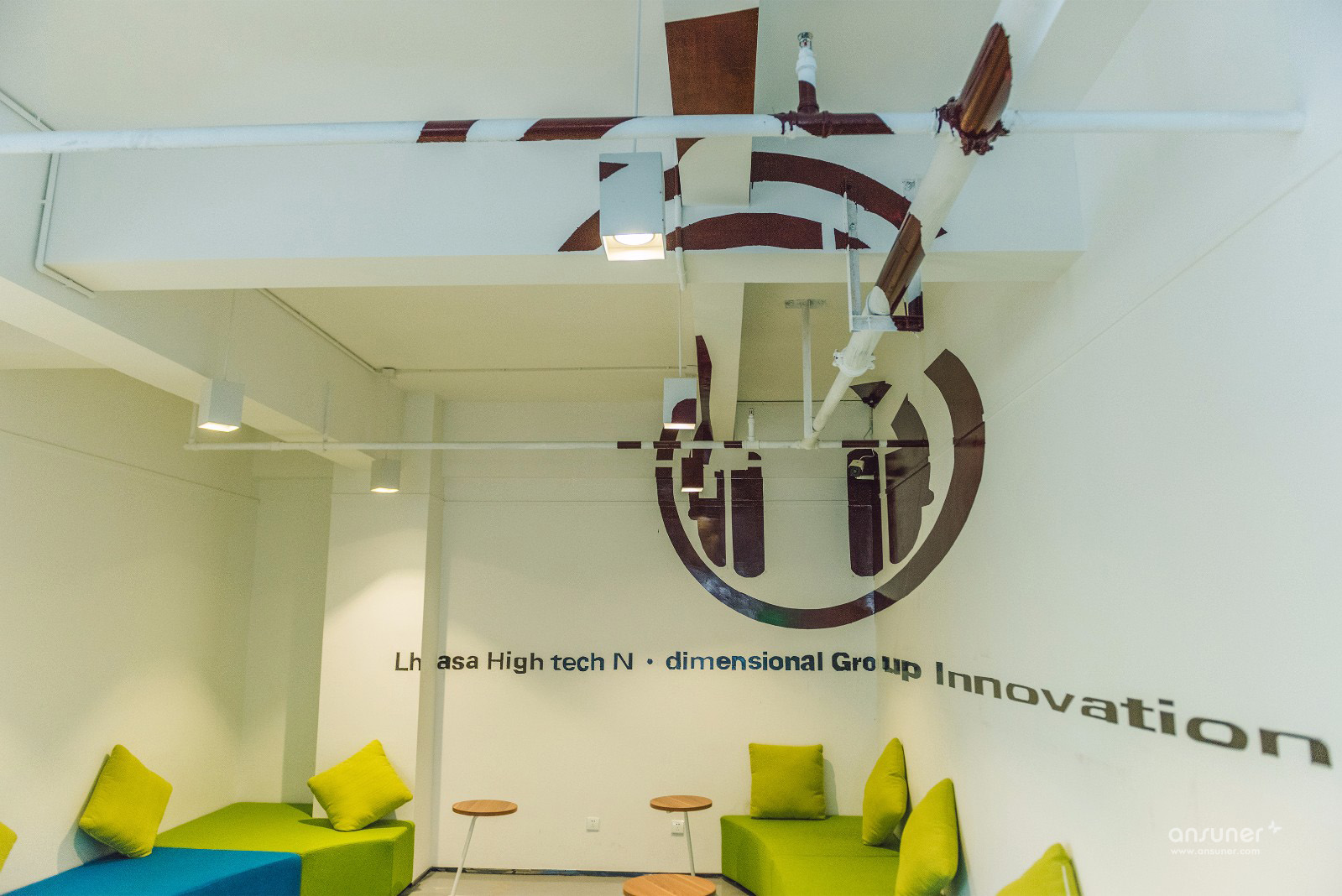 设计灵感来源于西藏山脉、动物、服饰等元素组成地域文化,运用现代设计手法,体现现代藏式风格。通过平面设计与空间的结合丰富硬装设计,与使用群体年龄相匹配,通过原创设计使该项目从单纯的地理高度达到较高的艺术高度,将拉萨众创空间打造成市场化、专业化、集成化、网络化的“众创空间”,为小微创新企业成长和个人创业提供低成本、便利化、全要素、开放式的新型创业服务平台,实现创新与创业相结合、线上与线下相结合、孵化与投资相结合,为创业者提供良好的工作空间、网络空间、社交空间和资源共享空间。