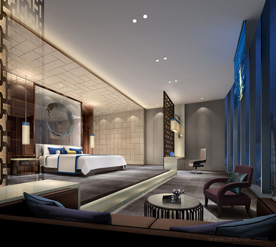 在大堂和宴会厅等主要公共空间放置大型主题公共雕塑,与气势磅礴的智能艺术装置、壁画共同构成J酒店文化主题观。 公共艺术的互动特质成为客人值得记忆的酒店名片,壮观的城市意境与主题艺术交相辉映,令人流连。