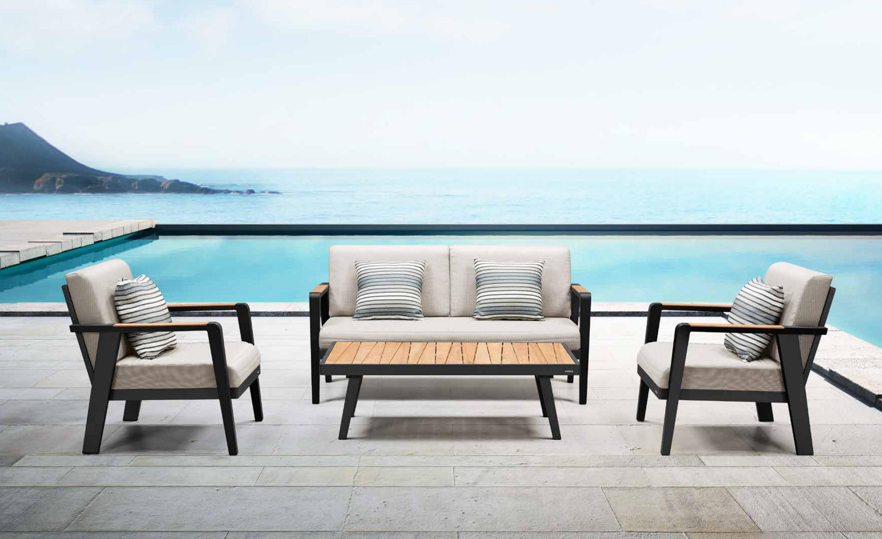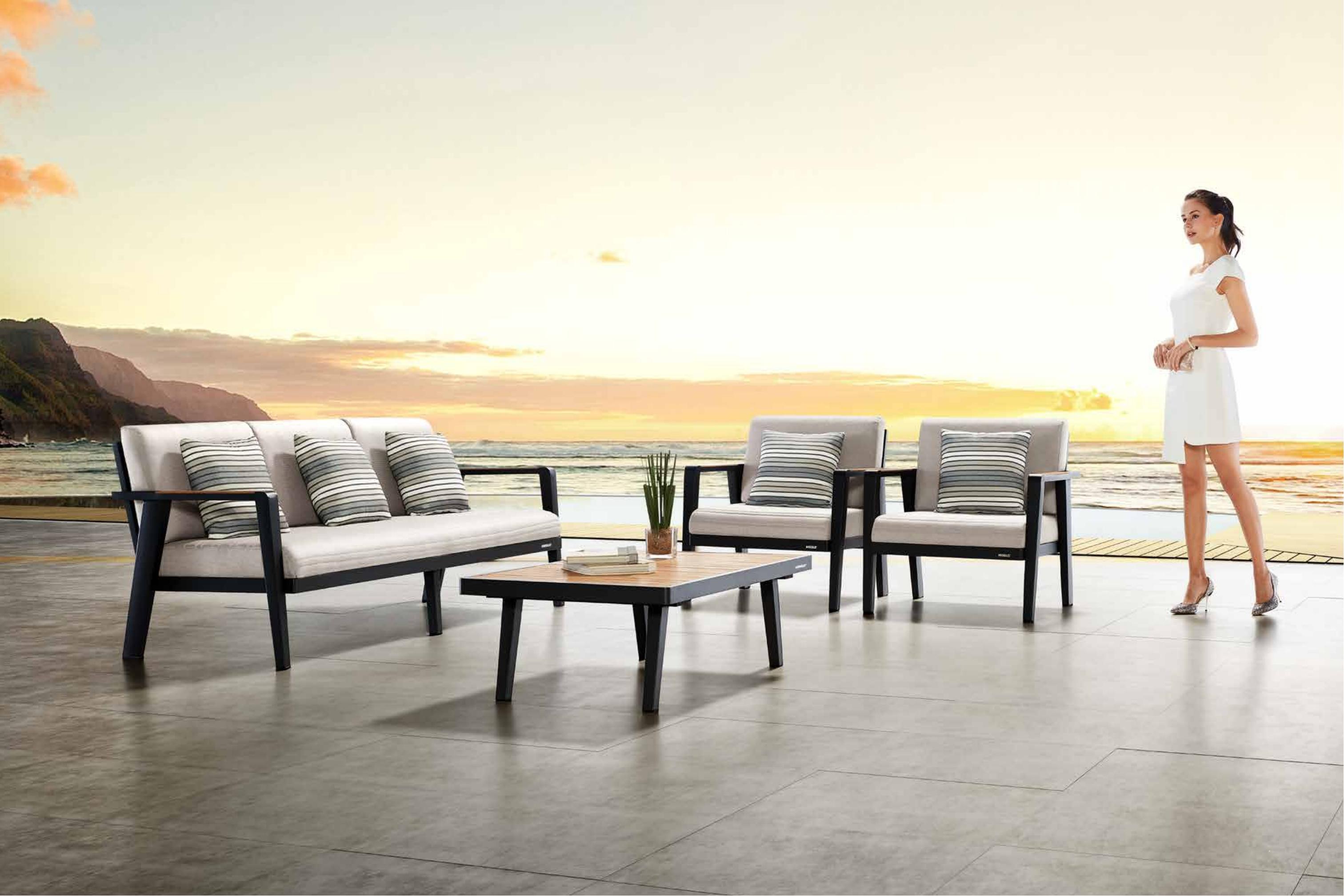 伊莫堤户外休闲系列是诺菲系列灵感的延伸,它的主体大胆采用。大量铝材,凸显出金属的刚硬,巧妙搭配柔软的座背垫,又让它增添了一份柔情,所以我们称之为“伊莫堤”哲学。